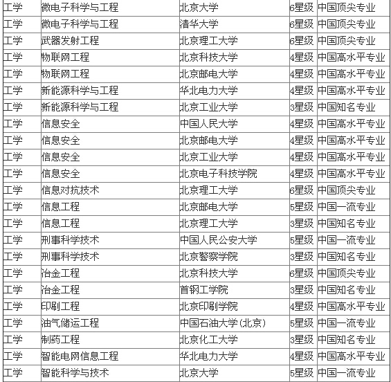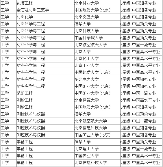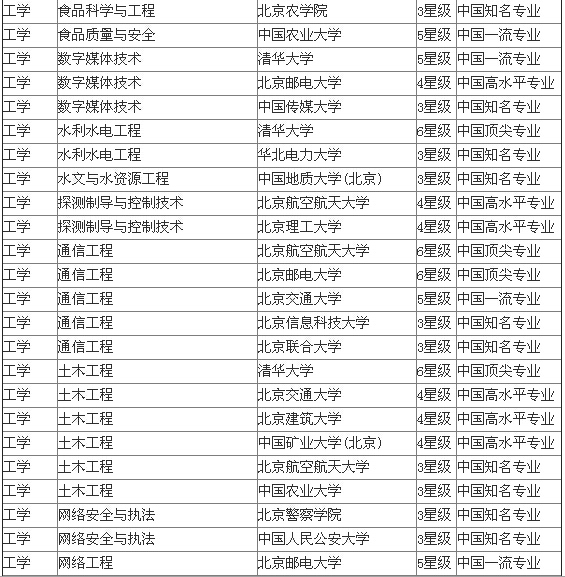 2015年北京市大學(xué)三星級(jí)以上專業(yè)排行榜