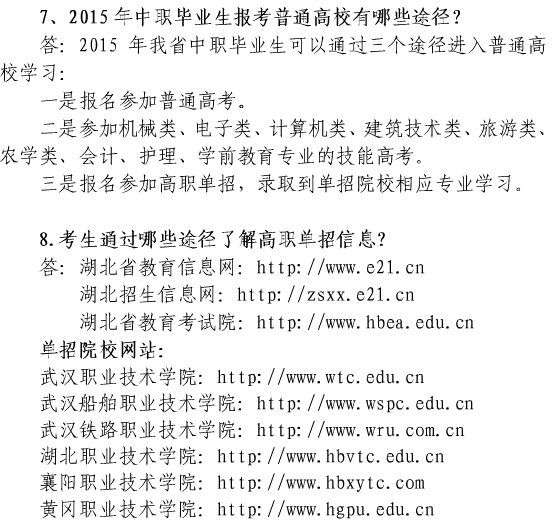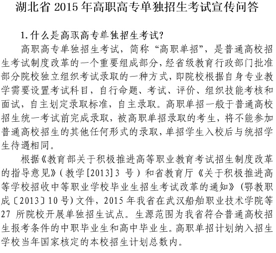 "2015年湖北省高職高專單獨(dú)招生考試宣傳問答" 相關(guān)文章推薦