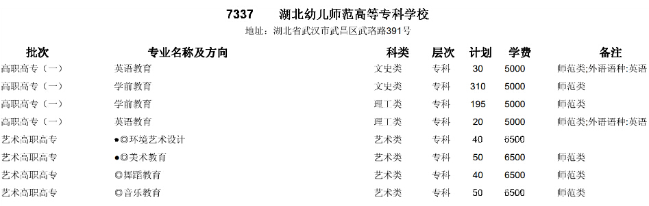 湖北幼兒師范高等專科學(xué)校2014年在湖北省招生計(jì)劃