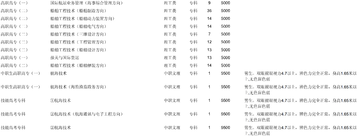 武漢航海職業(yè)技術學院2014年在湖北省招生計劃