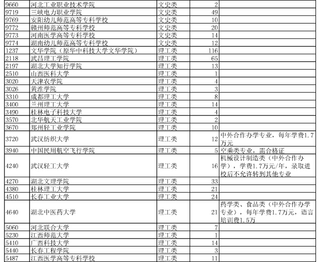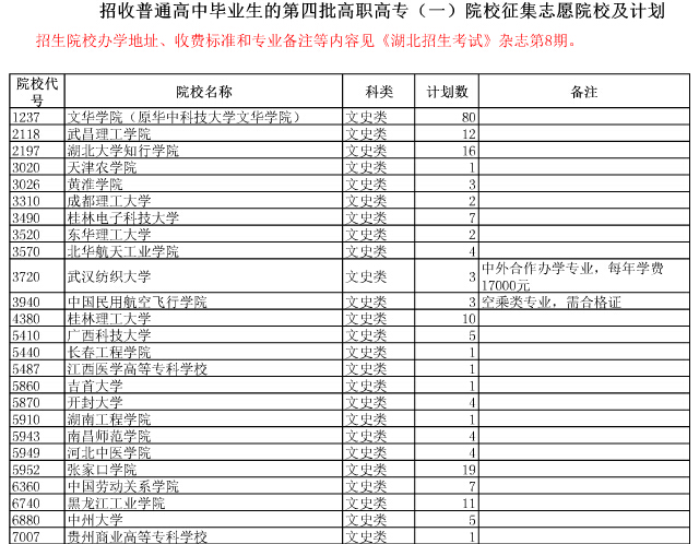 湖北2014年高招第四批高職高專(一)征集志愿院校及計劃