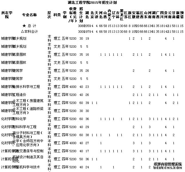 湖北工程學(xué)院2015年分省分專業(yè)招生計(jì)劃
