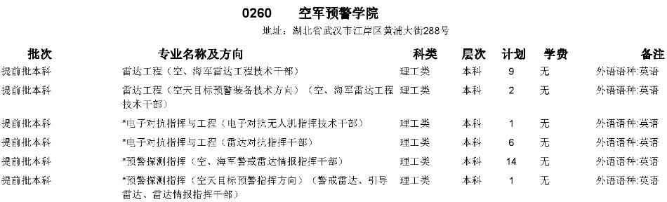 湖北高考網(wǎng)獲悉,2015年空軍預警學院在湖北省招生計劃如下: