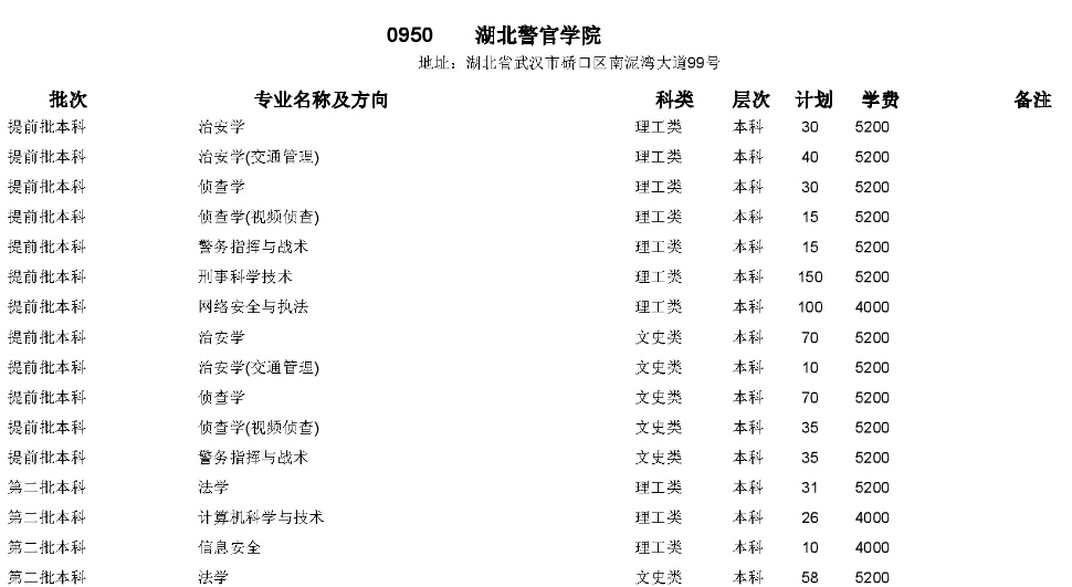 湖北警官學(xué)院2015年在湖北省招生計(jì)劃