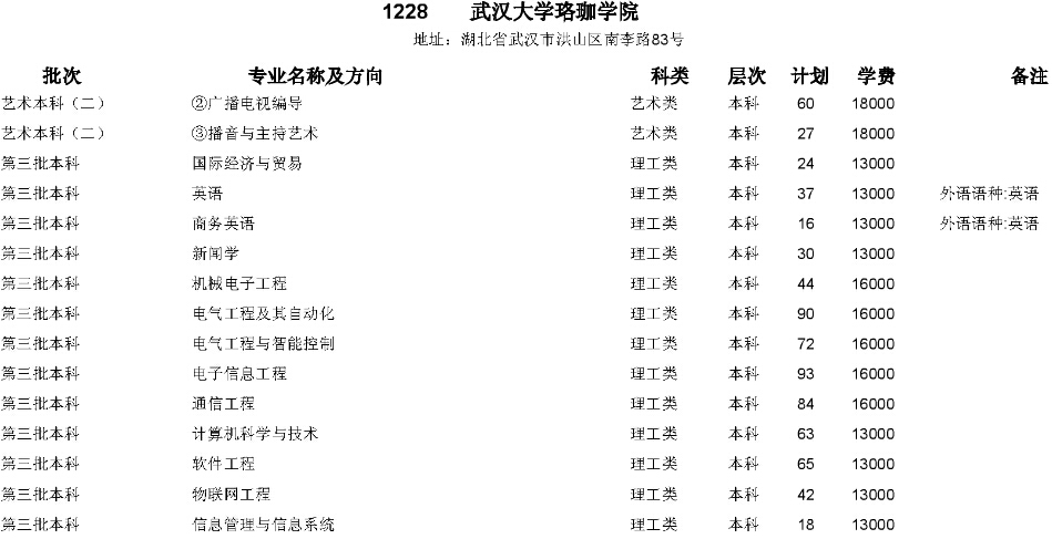 武漢大學(xué)珞珈學(xué)院2015年在湖北省招生計劃
