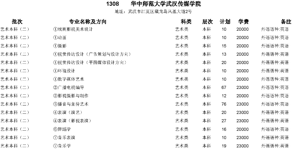華中師范大學(xué)武漢傳媒學(xué)院2015年在湖北省招生計劃