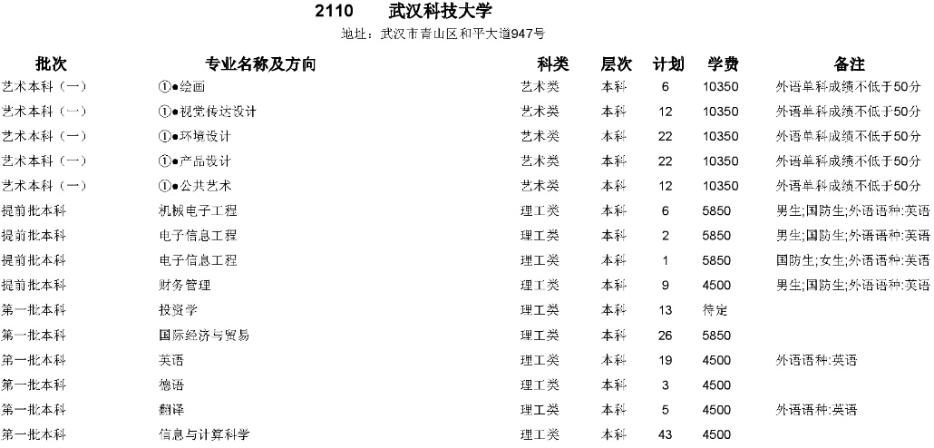 湖北高考網(wǎng)獲悉,2015年武漢科技大學(xué)在湖北省招生計劃如下: