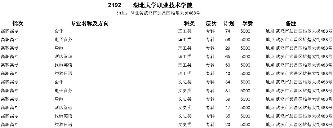 湖北大學職業(yè)技術(shù)學院2015年在湖北省招生計劃