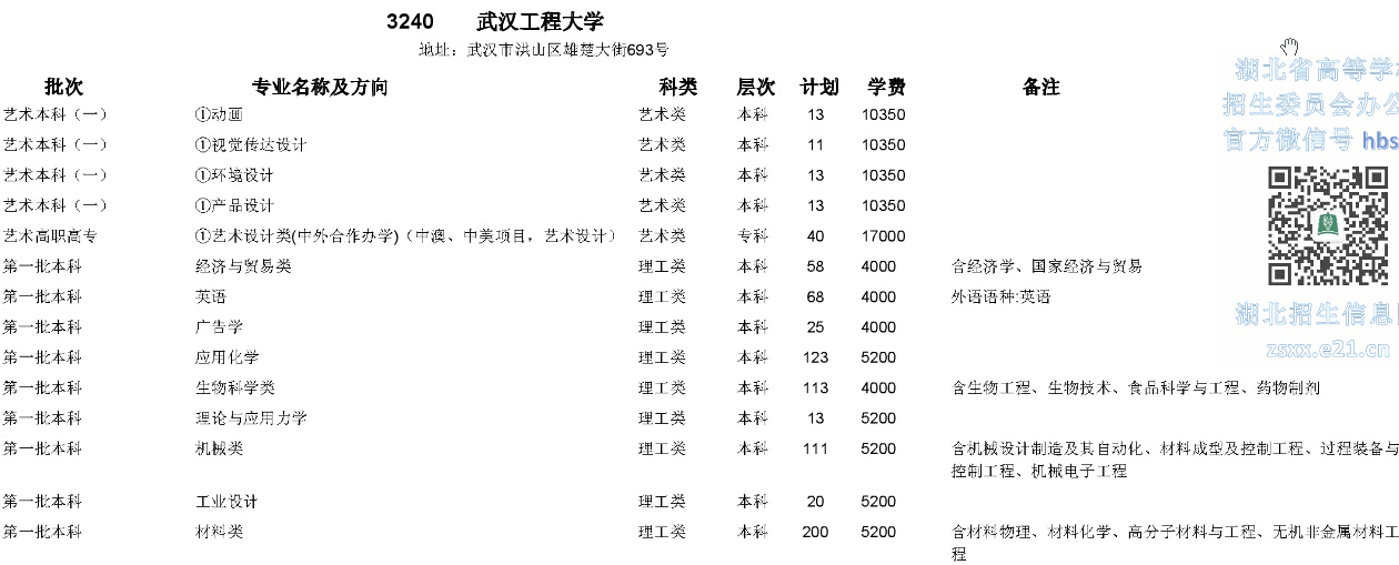 湖北高考網(wǎng)獲悉,2015年武漢工程大學(xué)在湖北省招生計劃如下: