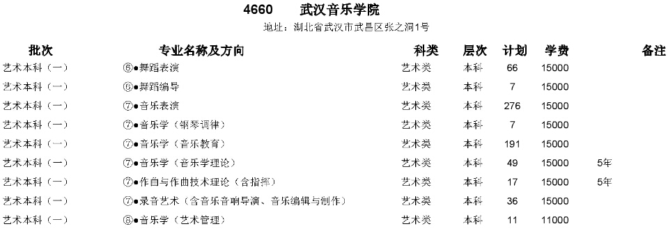 武漢音樂(lè)學(xué)院2015年在湖北省招生計(jì)劃