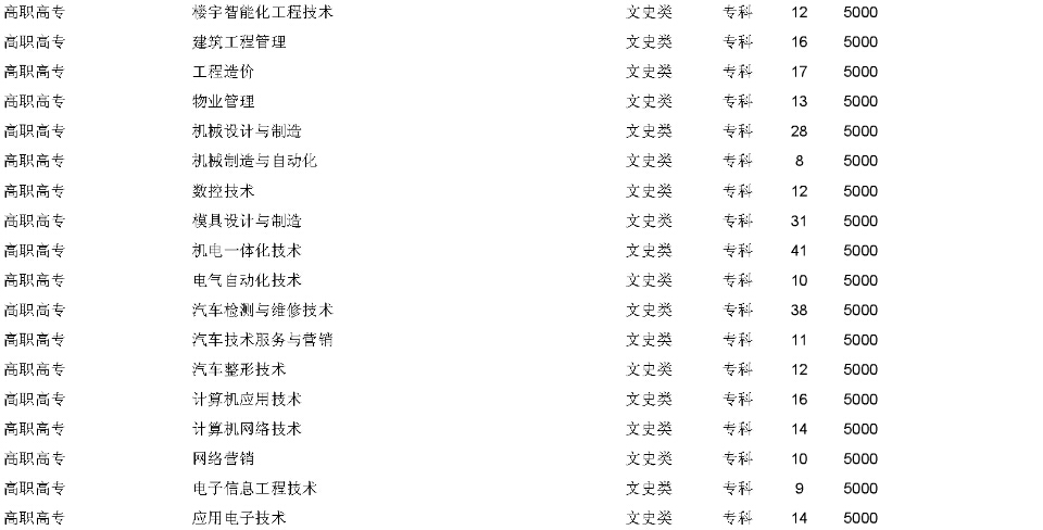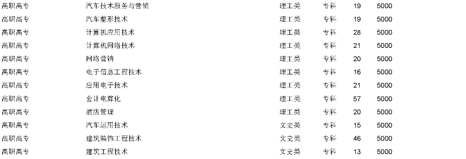 湖北工程職業(yè)學院2015年在湖北省招生計劃