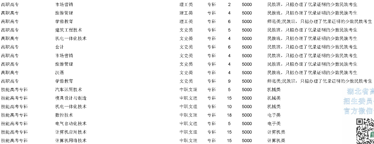 恩施職業(yè)技術(shù)學(xué)院2015年在湖北省招生計(jì)劃