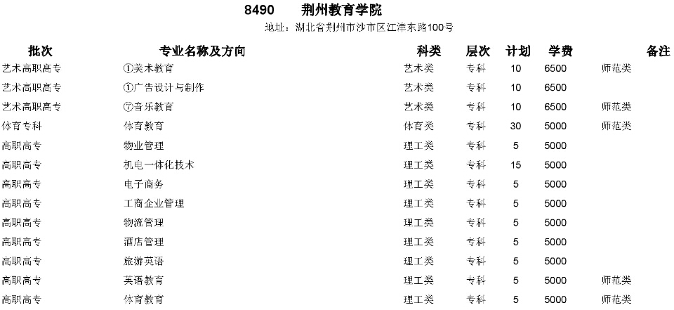 湖北高考網(wǎng)獲悉,2015年荊州教育學(xué)院在湖北省招生計劃如下: