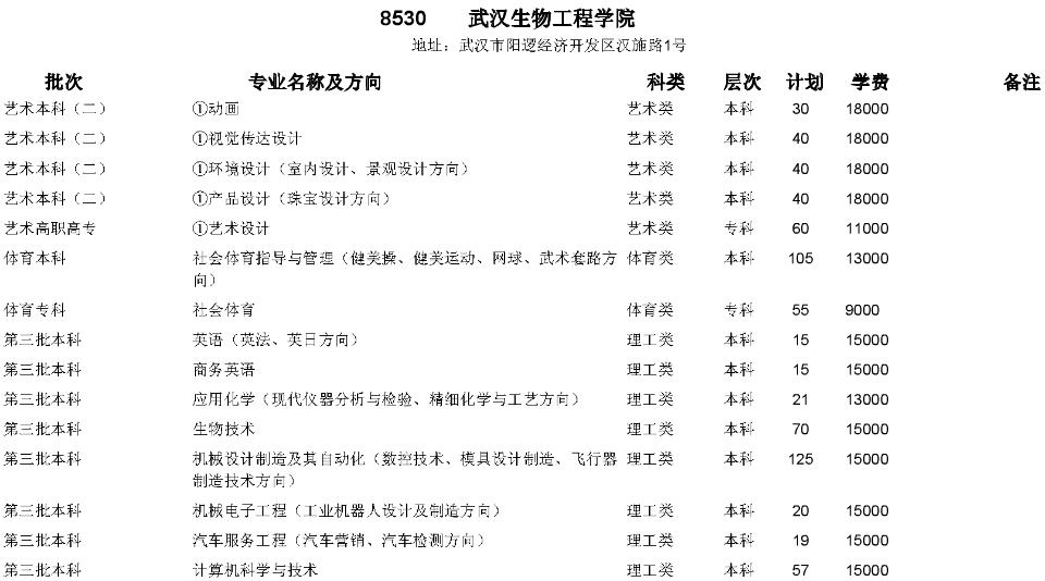 湖北高考網獲悉,2015年武漢生物工程學院在湖北省招生計劃如下: