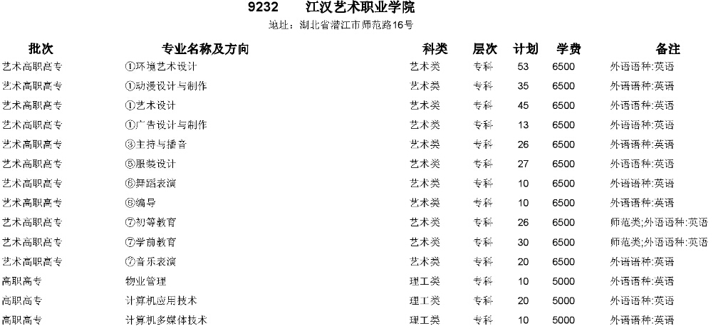 江漢藝術(shù)職業(yè)學(xué)院2015年在湖北省招生計(jì)劃