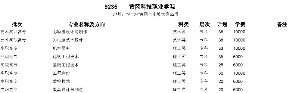 湖北高考網(wǎng)獲悉,2015年黃岡科技職業(yè)學(xué)院在湖北省招生計劃如下: