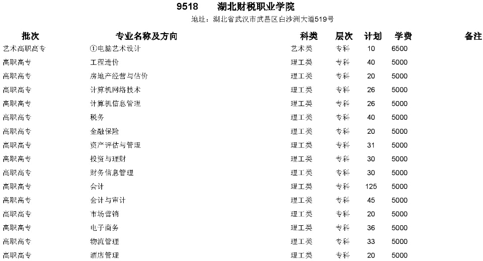 湖北財(cái)稅職業(yè)學(xué)院2015年在湖北省招生計(jì)劃