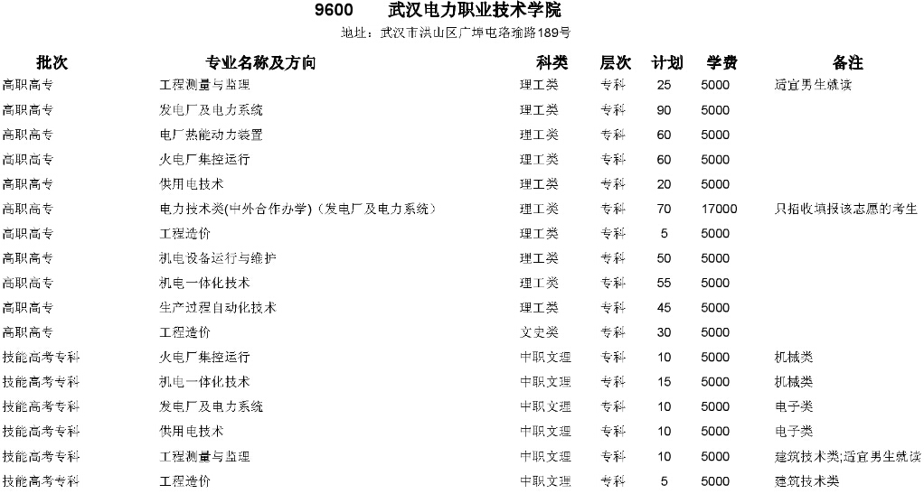 湖北高考網(wǎng)獲悉,2015年武漢電力職業(yè)技術(shù)學(xué)院在湖北省招生計(jì)劃如下:
