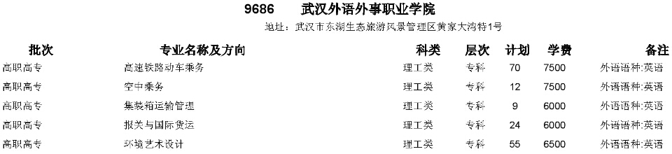 湖北高考網(wǎng)獲悉,2015年武漢外語外事職業(yè)學(xué)院在湖北省招生計(jì)劃如下: