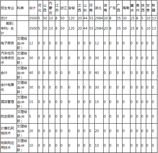 武漢商貿(mào)職業(yè)學(xué)院2015年分省分專業(yè)招生計劃