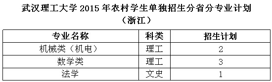 "2015年武漢理工大學(xué)農(nóng)村學(xué)生單獨招生在浙江招生計劃" 相關(guān)文章推薦