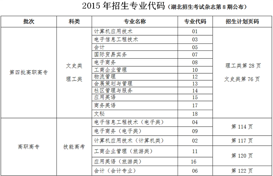 湖北高考網(wǎng)獲悉,2015年武漢科技職業(yè)學(xué)院招生專業(yè)代碼如下: