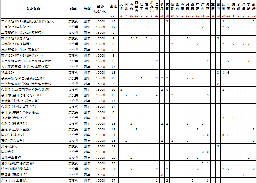 武漢工商學(xué)院2015年文史類招生計(jì)劃