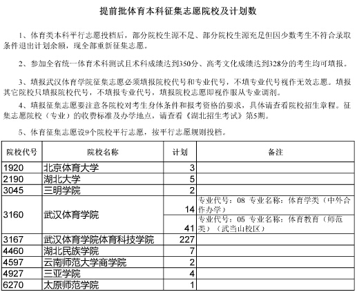 湖北2015年高招提前批體育本科征集志愿院校及計劃數(shù)
