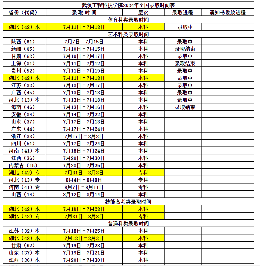 附:截止7月14日武漢工程科技學(xué)院在各省各批次的錄取狀態(tài)
