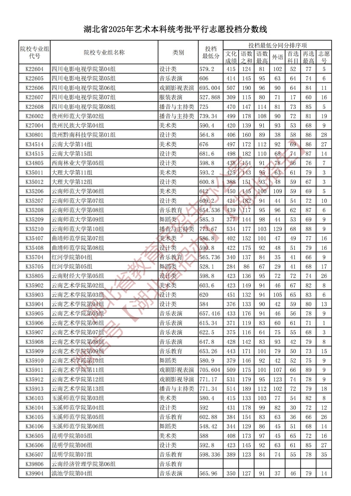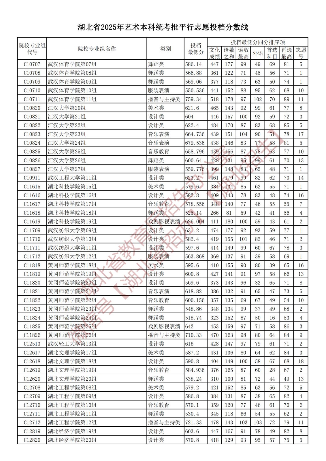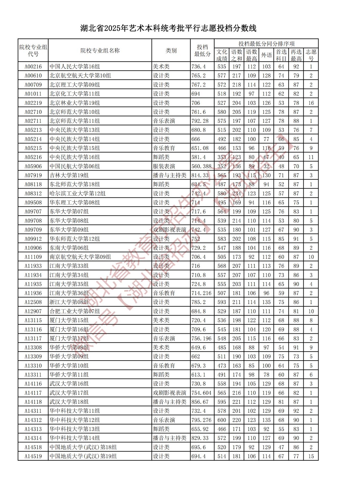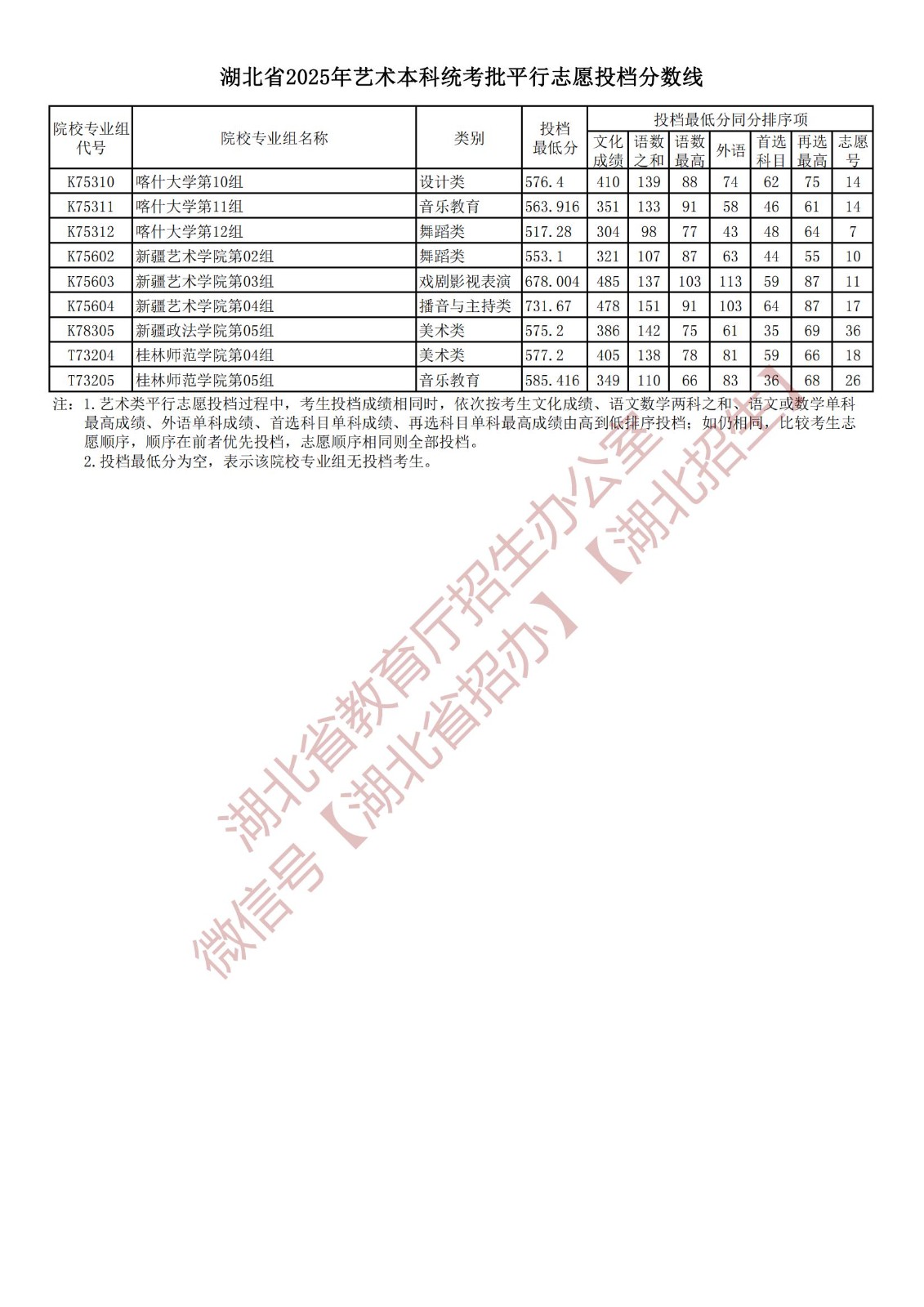 湖北省2025年普通高校招生藝術(shù)類本科統(tǒng)考批平行志愿投檔分?jǐn)?shù)線正式揭曉!這一關(guān)鍵數(shù)據(jù)的發(fā)布,為全省藝術(shù)類考生填報(bào)本科階段志愿提供了最權(quán)威的依據(jù)。作為湖北高考藝術(shù)類招生錄取的重要環(huán)節(jié),本次公布的投檔分?jǐn)?shù)線涵蓋了音樂學(xué)類、舞蹈學(xué)類、戲劇與影視學(xué)類(含播音與主持藝術(shù)、廣播電視編導(dǎo))、美術(shù)學(xué)類、設(shè)計(jì)學(xué)類等主要統(tǒng)考類別下的各招生院校及專業(yè)。考生需特別注意,藝術(shù)類投檔依據(jù)的是?按省統(tǒng)一規(guī)則計(jì)算的專業(yè)綜合分(專業(yè)統(tǒng)考成績占比通常較高)?,請(qǐng)對(duì)照自身類別和綜合分,精準(zhǔn)定位目標(biāo)院校。