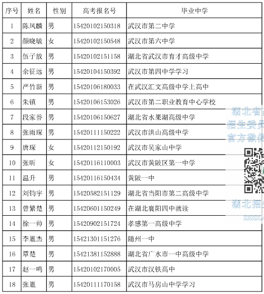 湖北2015年邊防軍人子女預(yù)科班考生資格名單