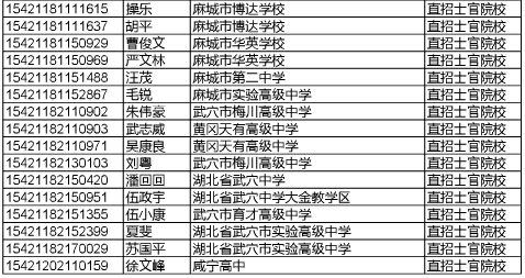 湖北高考網獲悉,2015年湖北直招士官參檢名單如下: