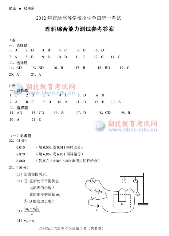 "2012年湖北省高考理綜B卷試題答案" 相關(guān)文章推薦