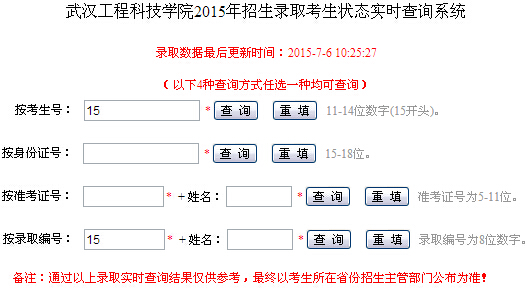 武漢工程科技學(xué)院2015年錄取查詢?nèi)肟?/strong>