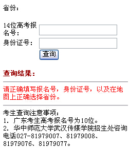 華中師范大學(xué)武漢傳媒學(xué)院2015年錄取查詢?nèi)肟?/strong>