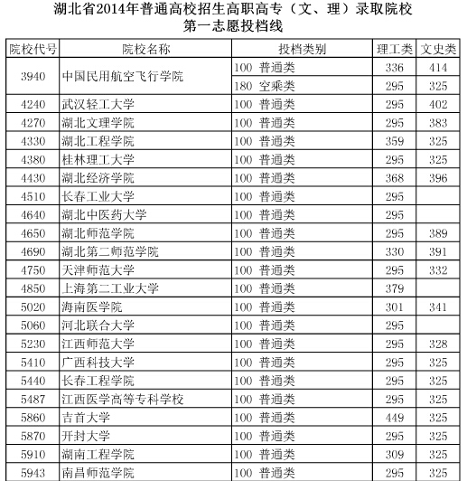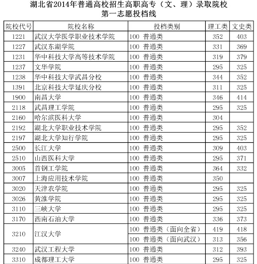 "2014年湖北高招第四批高職高專(一)文理類錄取院校第一志愿投檔線" 相關(guān)文章推薦