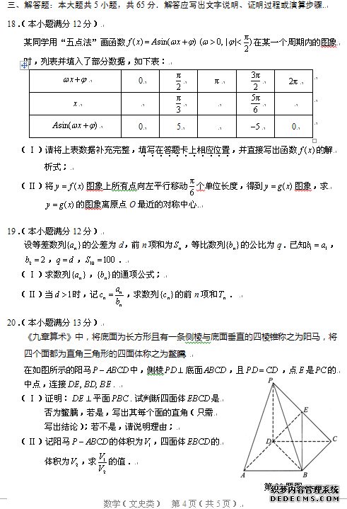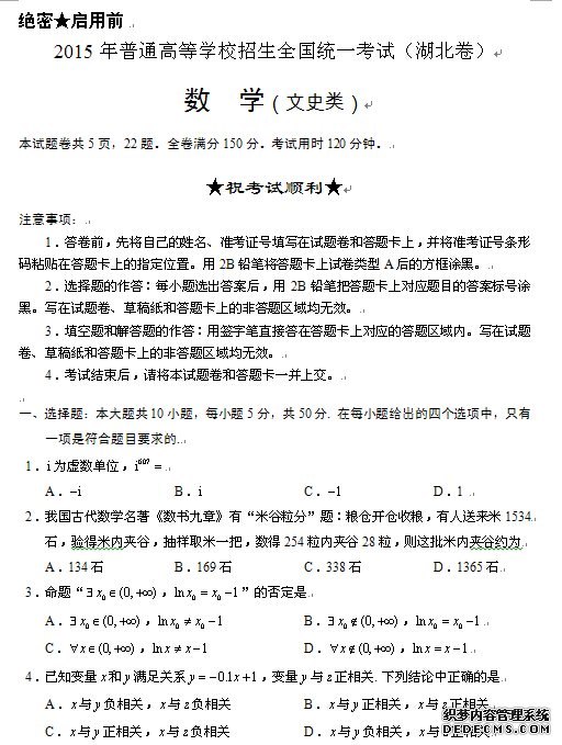 湖北2015年高考文科數(shù)學真題及答案官方完整版