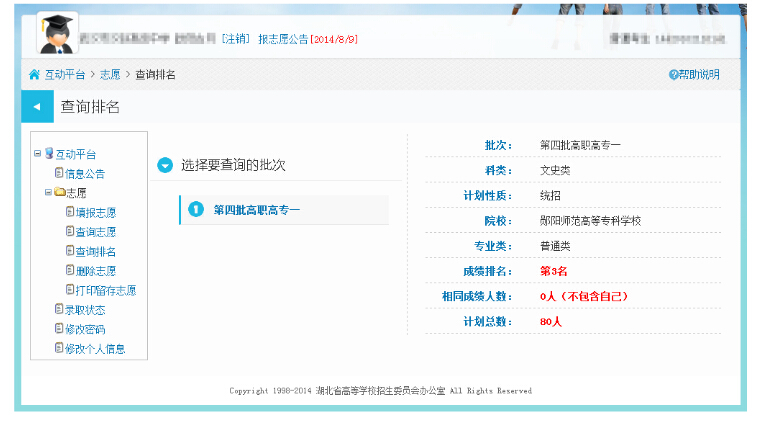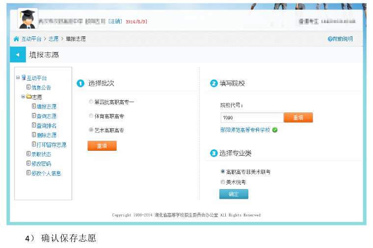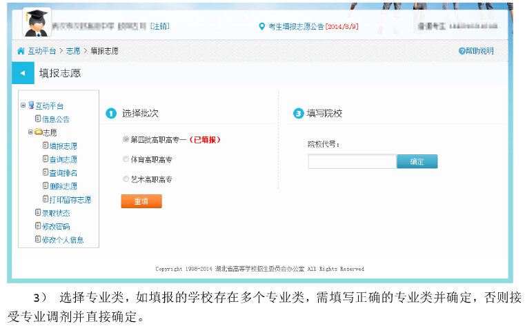 湖北2014年高招高職高專補(bǔ)錄征集志愿填報(bào)系統(tǒng)考生操作圖解