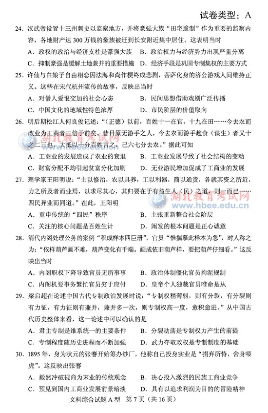 "2012年湖北省高考文綜A卷試題" 相關(guān)文章推薦