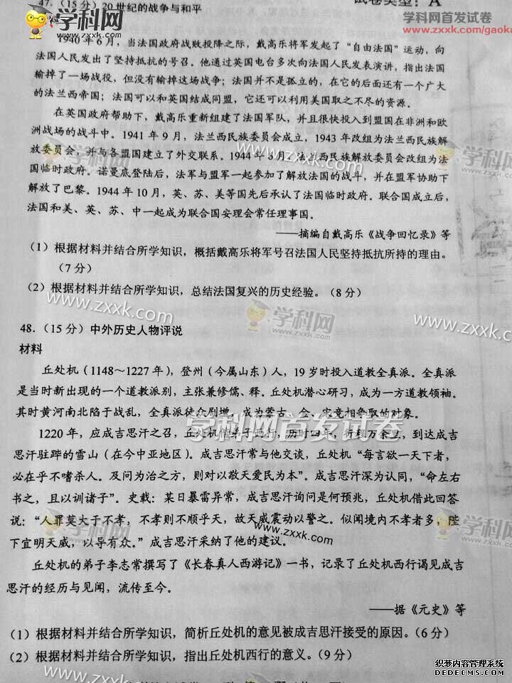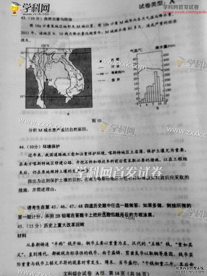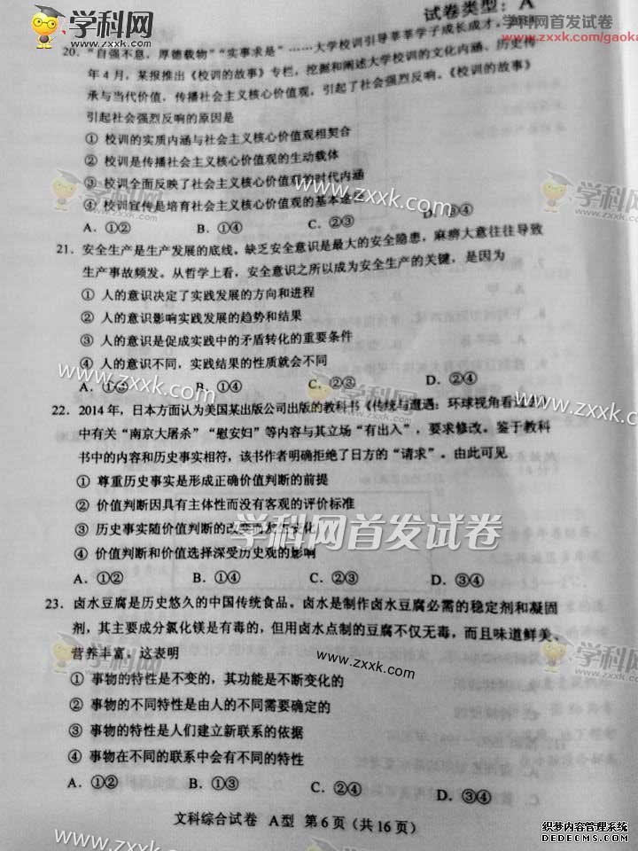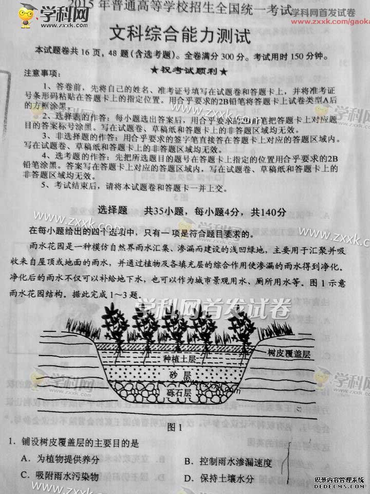 湖北2015年高考文科綜合真題(圖片版)