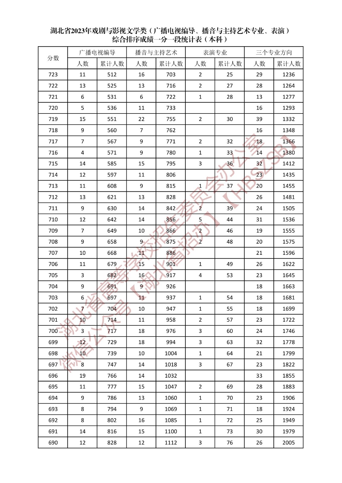 以上是湖北省2023年普通高考總分一分一段統(tǒng)計(jì)表,更多相關(guān)高考政策信息請(qǐng)關(guān)注我們。