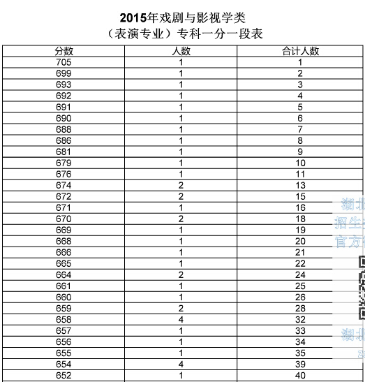 湖北2015年高考戲劇與影視學(xué)類(表演)專科一分一段表