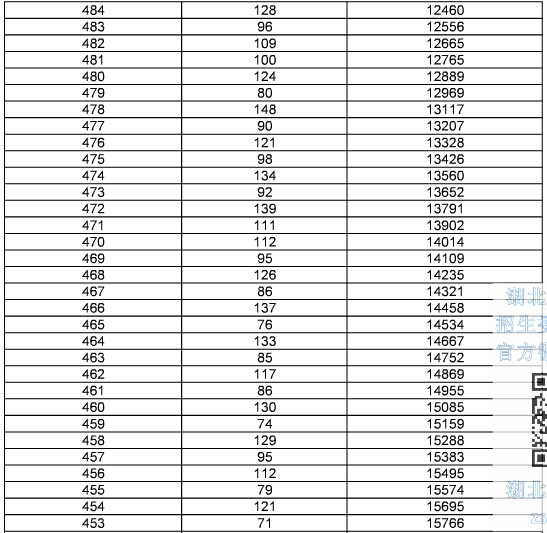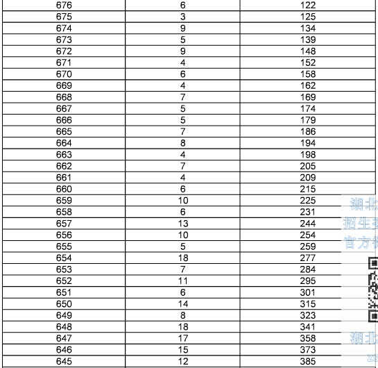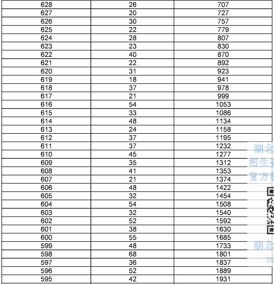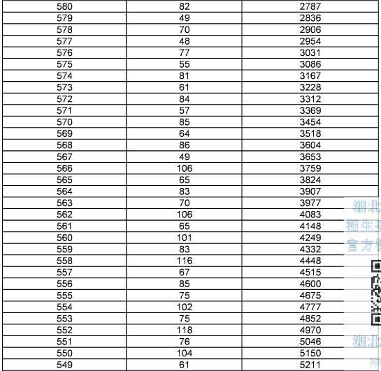 2015年湖北高考總分成績一分一段表