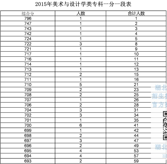 湖北2015年高考美術(shù)與設(shè)計(jì)學(xué)類專科一分一段表
