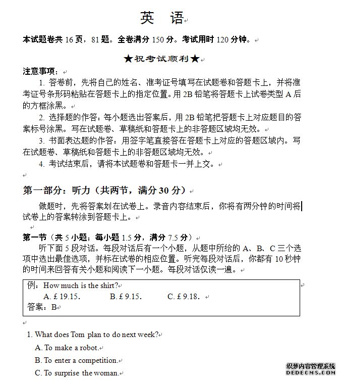 湖北高考網(wǎng)獲悉,2015年湖北高考試卷真題及答案已經(jīng)公布啦!大家在考后放松也別忘記估分哦!以下是2015年湖北高考英語真題及答案官方完整版: