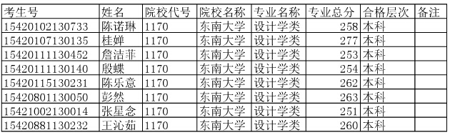 東南大學(xué)2015年在湖北省招生藝術(shù)專業(yè)合格考生名單