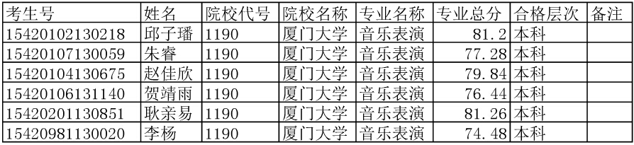湖北高考網(wǎng)獲悉,2015年廈門大學(xué)在湖北省招生藝術(shù)專業(yè)合格考生名單已公布,詳情如下: