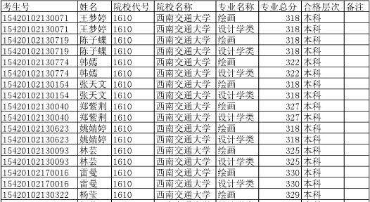 湖北高考網(wǎng)獲悉,2015年西南交通大學(xué)在湖北省招生藝術(shù)專業(yè)合格考生名單已公布,詳情如下: