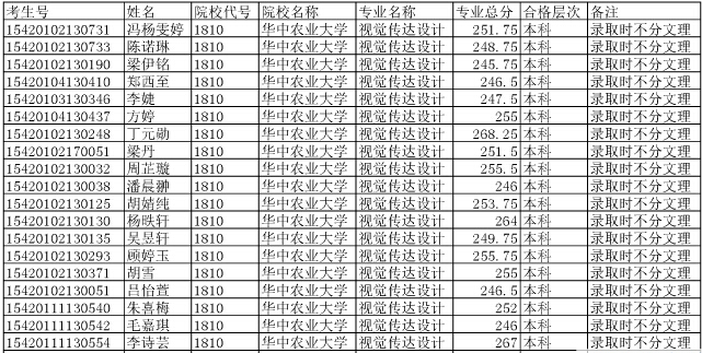 華中農(nóng)業(yè)大學(xué)2015年在湖北省招生藝術(shù)專業(yè)合格考生名單