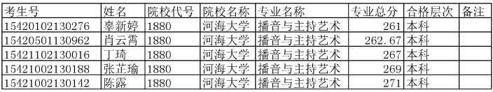 河海大學(xué)2015年在湖北省招生藝術(shù)專業(yè)合格考生名單